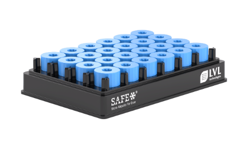 Szivárgásmentes kupakok az LVL 48 férőhelyes rackbe helyezhető külső menetes csöveire. Aszeptikus és steril kivitelben.