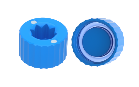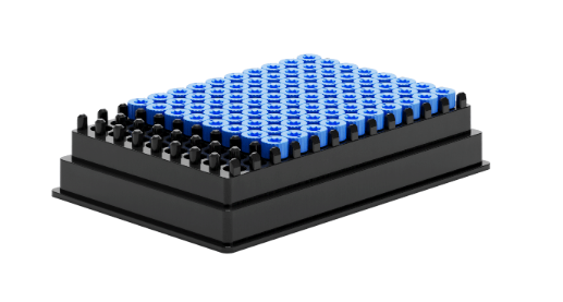 Szivárgásmentes kupakok az LVL 96 férőhelyes rackbe helyezhető külső menetes csöveire. Aszeptikus és steril kivitelben.